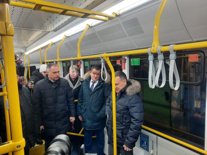 В декабре филиал МКП «ГЭТ» № 5 «Правобережный трамвайный» показал мэру очередную готовую к поездкам по городу машину и девятый по счету машинокомплект, состоящий из кузова с сиденьями, поручнями и тягового электропривода, только поступивший из Беларуси. До конца года специалисты предприятия укомплектовали его ходовой частью, системой отопления, информирования, навигации и видеонаблюдения.