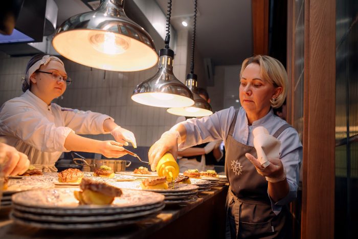 Оттолкнувшись от рецептов семьи Чеховых, которые бережно собрали сотрудники Дома-музея А. П. Чехова в Ялте (знаменитой «Белой дачи»), кухмейстер «Ужина по-чеховски» соединила традиции русской кухни конца XIX века с современными кулинарными техниками и принципами подачи. И на столе появились переосмысленные блюда, отведав которые гости могли бы воскликнуть вполне по-чеховски: «Покушайка! Великолепие!» — и причаститься к миру «посредством употребления спиртного напитка», за подбор которых отвечала сомелье Алена Суханова.