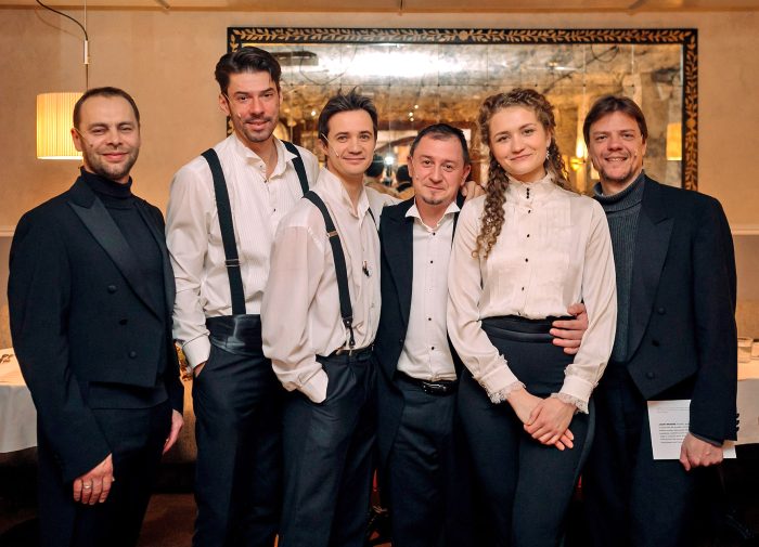 Для Чехова акт принятия пищи, прочно вписанный в среду «человека повседневного» и подспудно раскрывающий его драму, почти всегда ритуал, а если не ритуал, то таинство. И «Ужин по-чеховски» остался этому завету верен. Пока на кухне колдовали повара, в зале священнодействовали ведущие артисты театра «Красный факел» Карина Овечкина, Денис Ганин, Вадим Гусельников, Егор Овечкин, Александр Поляков и Андрей Яковлев. Читая Чехова и рассказывая о Чехове, они несли просветительскую миссию — буквально связывали хорошую пищу и доброе слово. Соединяя философию еды и чтецкое искусство, довершали гостеприимную атмосферу старинного особняка и, кажется, погружая сотрапезников в мир писателя, приобщали их к тайнам бытия. По крайней мере, о том можно было судить, судя по царившему за каждым столиком настроению «тихого счастья и светлого веселья».
