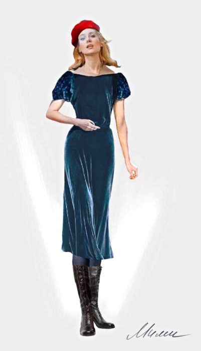 — Для меня в плане гардероба самый разнообразный и характерный персонаж — Мюзетта. Она в каждом своем появлении очень разная. Это яркая, открытая, эмоциональная, полная жизни и страсти девушка. В то же время она нежная и чуткая. И я надеюсь, что вся многогранность этого образа, этой пылкой натуры отразилась в ее костюмах. Первое появление Мюзетты — как взрыв. Она появляется на вечеринке в ресторане просто как диско-шар, в сверкающем и довольно «сложносочиненном» платье из пайеточной ткани. Однозначно она звезда этого вечера. А далее в сцене у заставы Мюзетта появляется в ультрамодном укороченном бархатном пальто сложного оранжевого оттенка, в высоких ботфортах и кепи, с очень «громкими» деталями, что, на мой взгляд, соответствует характеру этой девушки.