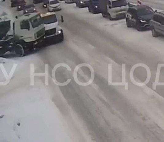 Мусоровоз столкнулся со снегоуборочной машиной на Большевистской в Новосибирске