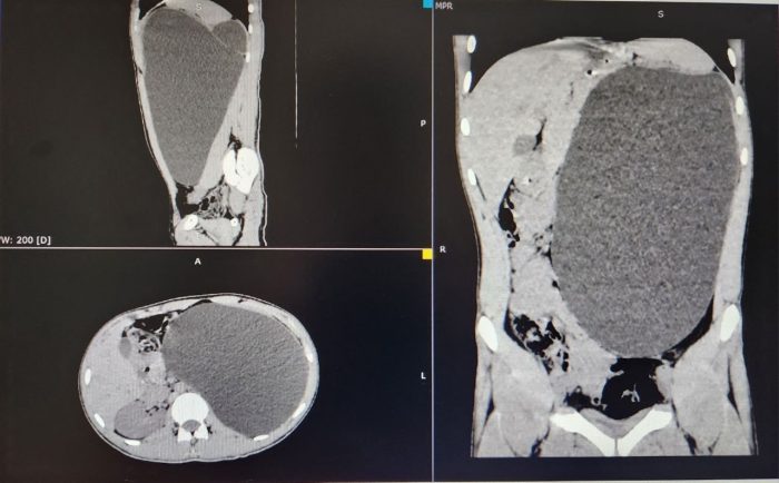 «Такое бывает либо при огромных опухолях, либо при гидронефрозе IV степени, когда почка превращается в гигантский мешок, заполненный мочой. У пациента был второй вариант. Почка достигла размеров пятилитровой бутылки! Она занимала почти весь объем живота и давила на все соседние органы. Это была настоящая «бомба замедленного действия»: любая травма, случайный удар в живот — и мешок мог разорваться внутри», — рассказали сегодня в ДГКБ №1.
