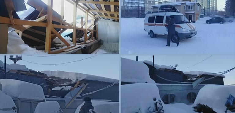 Крыша здания горнолыжного комплекса рухнула в Октябрьском районе Новосибирска