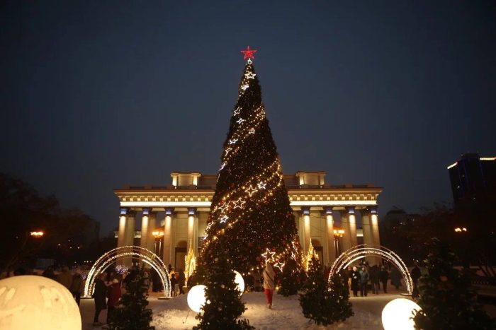 В прошлом году возле оперного театра также стояла 21-метровая ель с подсветкой и арками. В этом сезоне оформление станет масштабнее: добавят больше фотозон и светящихся элементов. Посетители смогут сделать снимки у арочного коридора «Волшебство», инсталляций «Дубовый лес», «Неоновые звёзды» и светящихся шаров. Всё оборудование подключат к подсветке, чтобы вечером сквер засиял праздничными огнями.