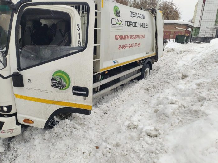 «После резкого потепления до +1 градуса экипажи мусоровозов все чаще сталкиваются с проблемами на маршрутах. Особенно сложная ситуация в частном секторе и узких дворах: спецтехника застревает в рыхлом снегу на нерасчищенных дорогах и не может выбраться без буксира. Из-за этого время вывоза отходов смещается. На улице Ушакова в Первомайском районе мусоровоз потерял управляемость и его стянуло в сугроб. Чтобы продолжить работу, пришлось вызывать трактор для расчистки дороги и эвакуации. В ожидании помощи экипаж провел несколько часов», — рассказали в пресс-службе «САХ».