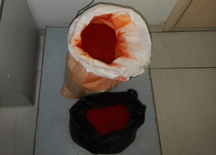 Мужчина перевозил два больших полиэтиленовых пакета с сухой смесью оранжевого цвета. Он объяснил, что специи предназначены для использования в работе кафе. Пакеты признали коммерческой партией, в данный момент проводится экспертиза для определения стоимости товаров.