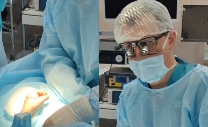 «Быстро собрав бригаду специалистов, мы в 10 часов зашли в операционную. Ладошка снаружи была практически полностью разрушена: переломаны кости и суставы, разорваны мягкие ткани, сосуды и нервные пучки. Задача-максимум в таких случаях — попытаться не просто восстановить руку целиком, но и сохранить её функции. К огромному сожалению, это оказалось невозможно, потому что указательный палец был повреждён безнадёжно и фактически ампутирован. Даже сохранить его с чисто косметической целью не имело смысла: палец не рос бы вместе со всем телом, а оставался таким же маленьким и абсолютно обездвиженным», — рассказал завотделением пластической и реконструктивной хирургии Максим Цегельников.