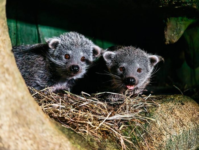 Родились маленькие бинтуронги еще до Нового года, 25 декабря, но сообщил об этом «тройном счастье» зоопарк только сейчас. Как рассказала зоолог Кристина Антонова, это два братика и сестричка. Растут и развиваются они нормально, в соответствии с возрастом. Активны и любознательны, постепенно осваивают взрослый рацион. Для плавного перехода на такую пищу им её дают мелко нарезанными кусочками.