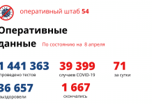 Новосибирский оперативный штаб сообщил, что на 8 апреля 2021 года в регионе было зарегистрировано 39 399 случаев заражения коронавирусной инфекцией. Из них новых случаев за...