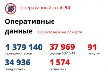По информации регионального оперативного штаба к утру 22 марта в Новосибирской области зарегистрирован еще 91 случай заболевания коронавирусной инфекцией. Общее число случаев заболевания с...