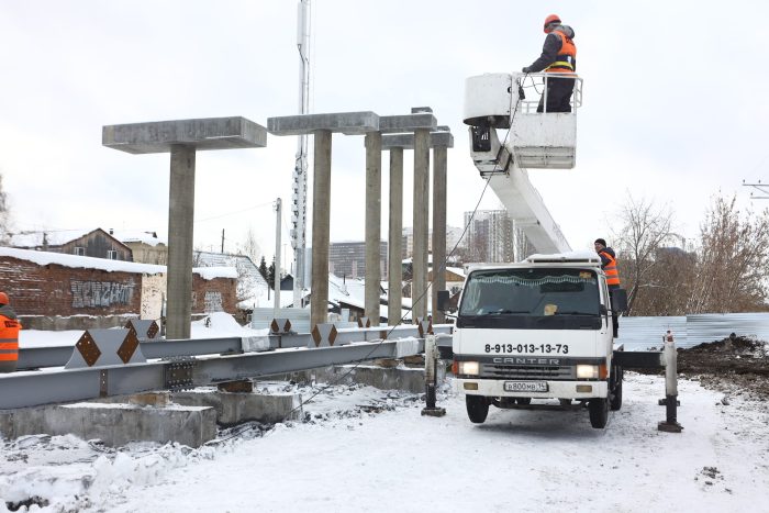 В Новосибирске продолжается строительство пешеходного моста над железной дорогой между Дзержинским и Калининским районами. Как сообщил сегодня мэр Максим Кудрявцев, проверивший ход работ, сдать новый объект должны в конце декабря.