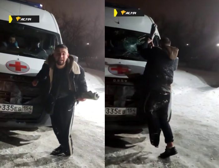Информация об этом появилась в соцсетях сегодня, 19 марта, но сообщается, что произошел инцидент 15 числа. По данным АСТ-54, сотрудники скорой помощи ехали с вызова, когда двое нетрезвых мужчин их остановили и стали кидаться на фельдшеров. В какой-то момент один из агрессоров снял с ноги протез и разбил лобовое стекло спецавтомобиля, что попало на видео.