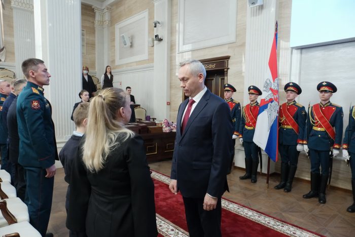 Травников вручил орден Мужества, медали Покрышкина, Почётные грамоты, Благодарности, Благодарственные письма губернатора Новосибирской области. На торжественном собрании в Государственном концертном зале им. Каца глава региона поздравил ветеранов, участников СВО и членов их семей, юношей и девушек из военных и кадетских классов.