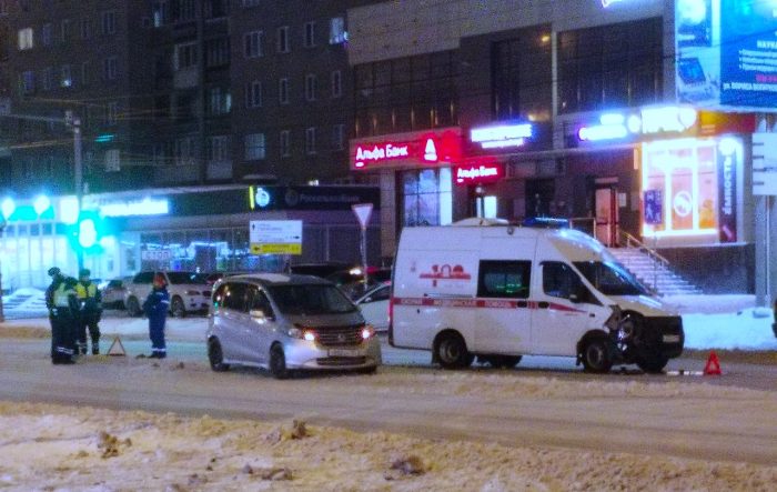 Вечером на улице Бориса Богаткова в Новосибирске произошло ДТП с участием автомобиля скорой помощи. Авария случилась у дома № 201/1 — спецтранспорт столкнулся с компактвэном Honda Freed.