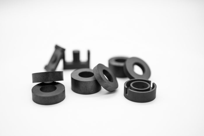Марганец-цинковые ферриты — это керамические материалы с магнитными свойствами, состоящие из оксидов железа, марганца и цинка. Их применяют в электронике — в трансформаторах и фильтрах блоков питания. Их преимуществом являются низкая цена и возможность изготовления деталей любой формы.