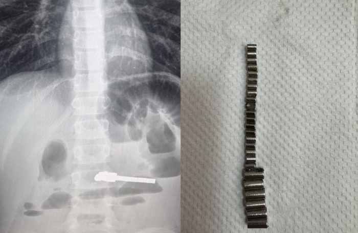 Отмечается, что ежегодно в хирургию детской больницы госпитализируют 3-7 ребят с инородными телами в животе, но случаи с магнитами вызывают особую тревогу. Они притягиваются друг к другу через стенки кишечника, что приводит к непроходимости, некрозу тканей, перфорации (образованию отверстия в стенках желудка или кишечника в результате некроза или сильного давления) и формированию свищей (неестественных сообщений между органами), как и получилось в данном случае.