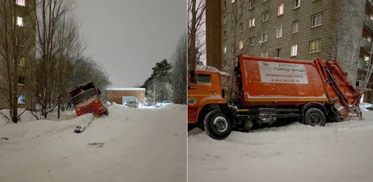В Новосибирске мусоровозы не доезжают до контейнеров, застревая в сугробах