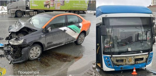 В Новосибирске целая семья пострадала, влетев в троллейбус на каршеринге. Видео