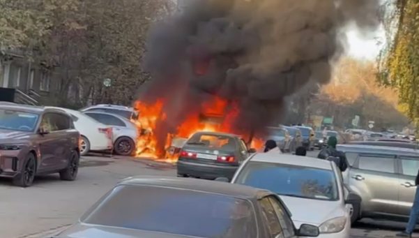 В Новосибирске 20 октября на улице Новогодней столкнулись два автомобиля, после чего один из них загорелся. Огонь быстро распространился и повредил несколько припаркованных неподалёку машин.