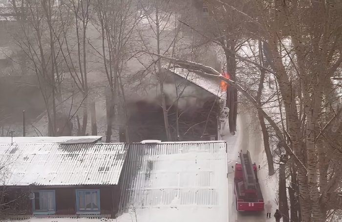 В Ленинском районе Новосибирска произошёл пожар в трёхэтажном деревянном доме по адресу 2-й переулок Серафимовича, 16.