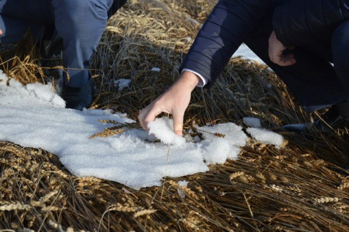 Этой осенью погода преподнесла аграриям неприятный сюрприз — снег выпал слишком рано, а морозы быстро сковали поля плотной коркой. Фермеры надеялись, что снег продержится пару дней и растает, но этого не произошло. Теперь оставшуюся на полях пшеницу убирать бессмысленно — влажность зерна слишком высокая, сушить дорого, а рыночные цены низкие.