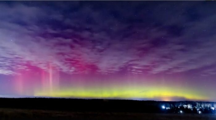 Буря началась вечером 29 сентября из-за всплеска солнечной активности. На следующий день её сила достигла уровня G3 (2-3 балла из 5 возможных). Одним из ярких последствий стали полярные сияния.Самое яркое сияние увидели жители северо-западных регионов России: Мурманской, Архангельской и Ленинградской областей и Карелии. Однако интенсивность свечения было такой, что увидеть его смогли и жители более южных регионов. Так, заснять «аврору» смог астрофотограф Алексей Поляков. Для этого он отправился за 30 километров от Новосибирска, возле Жеребцово, где небо не пересвечено искусственными источниками света.
