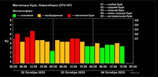 Метеозависимые новосибирцы могут выдохнуть, закончилась одна из самых долгих магнитных бурь за последние годы. Уже с вечера пятницы геомагнитная обстановка начала быстро приходить в норму, и сейчас показатели устойчиво держатся в «зелёной» зоне. Буря началась вечером 29 сентября из-за всплеска солнечной активности. На следующий день её сила достигла уровня G3 (2-3 балла из 5 возможных). … Читать далее Завершилась одна из самых долгих магнитных бурь за последние годы