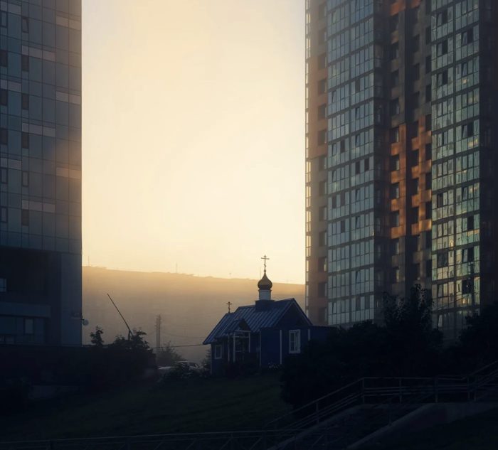 Одна из них прикреплена к локации «Приход храма в честь иконы Пресвятой Богородицы «Троеручица». Комментарий к кадру констатирует контрасты Новосибирска: крошечная церковь на фоне 24-этажного ЖК.