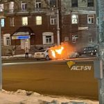 Машина вспыхнула после столкновения на перекрёстке в Новосибирске